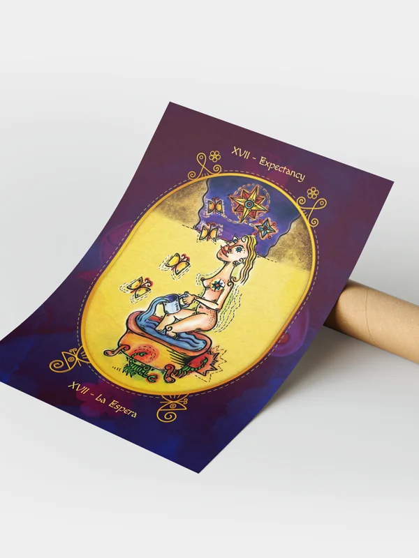 It is a unique deck mixing the wisdom of the arcana of the classic tarot, with the mestizo and fantastic imaginary of the new world. Full of cheerful, colorful and surreal images that represent all the ‘Macondian’ magic through powerful symbols: Yellow Butterflies, Goldfish, Tears and Tropical Flowers.